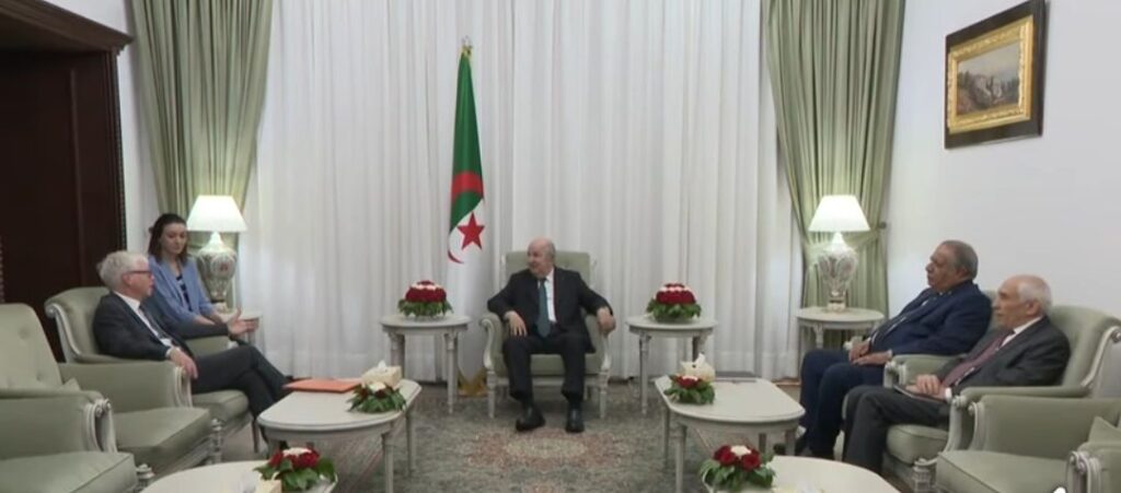 Le Président de la République, M. Abdelmadjid Tebboune, a reçu Son Excellence l’Ambassadeur du Royaume-Uni de Grande-Bretagne et d’Irlande du Nord, M. James Robert Stephen Downer, indique un communiqué de la présidence de la République.