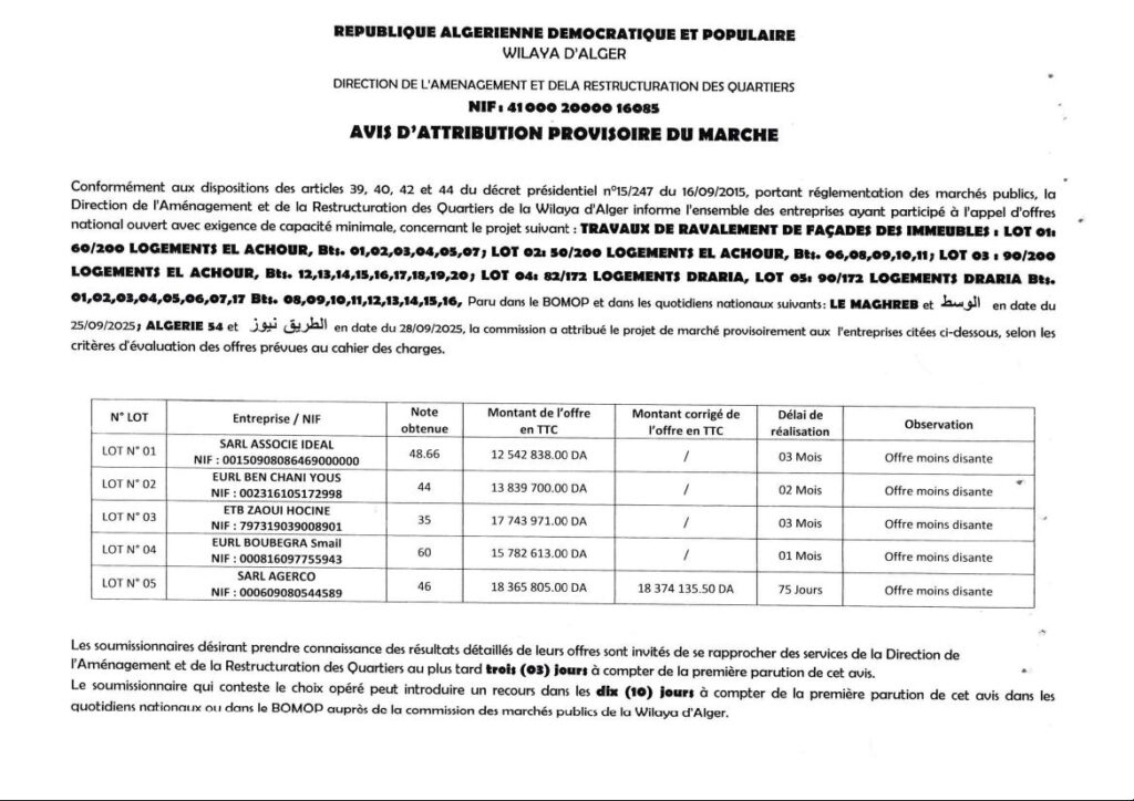 Client : Direction de l'Aménagement et de la Restructuration des Quartiers de la Wilaya d'Alger