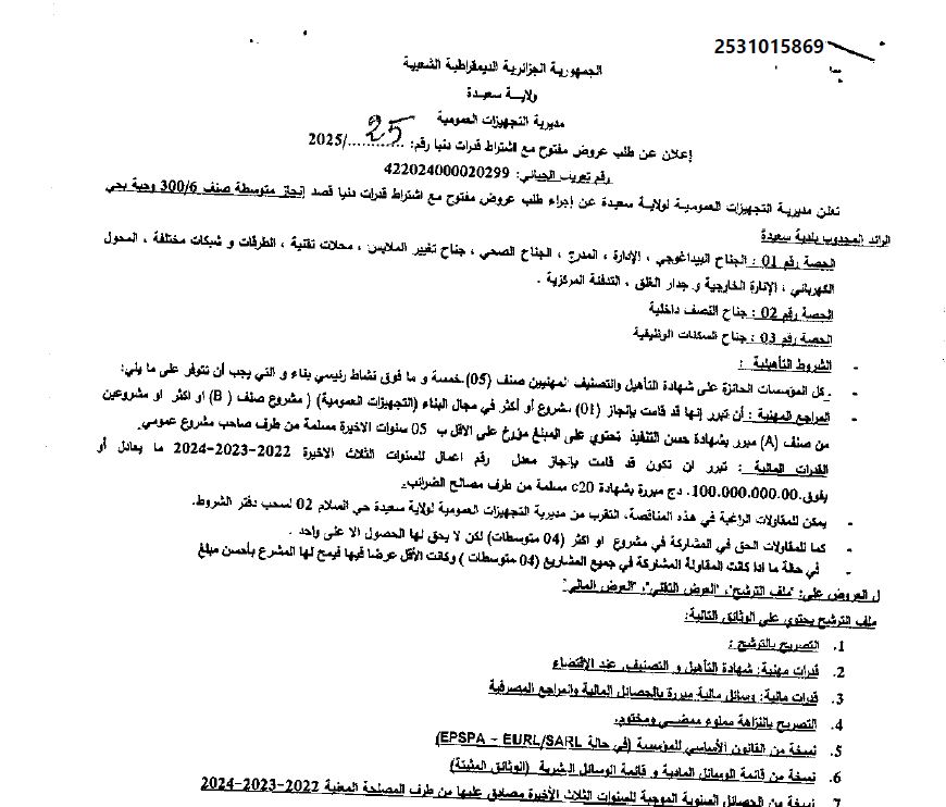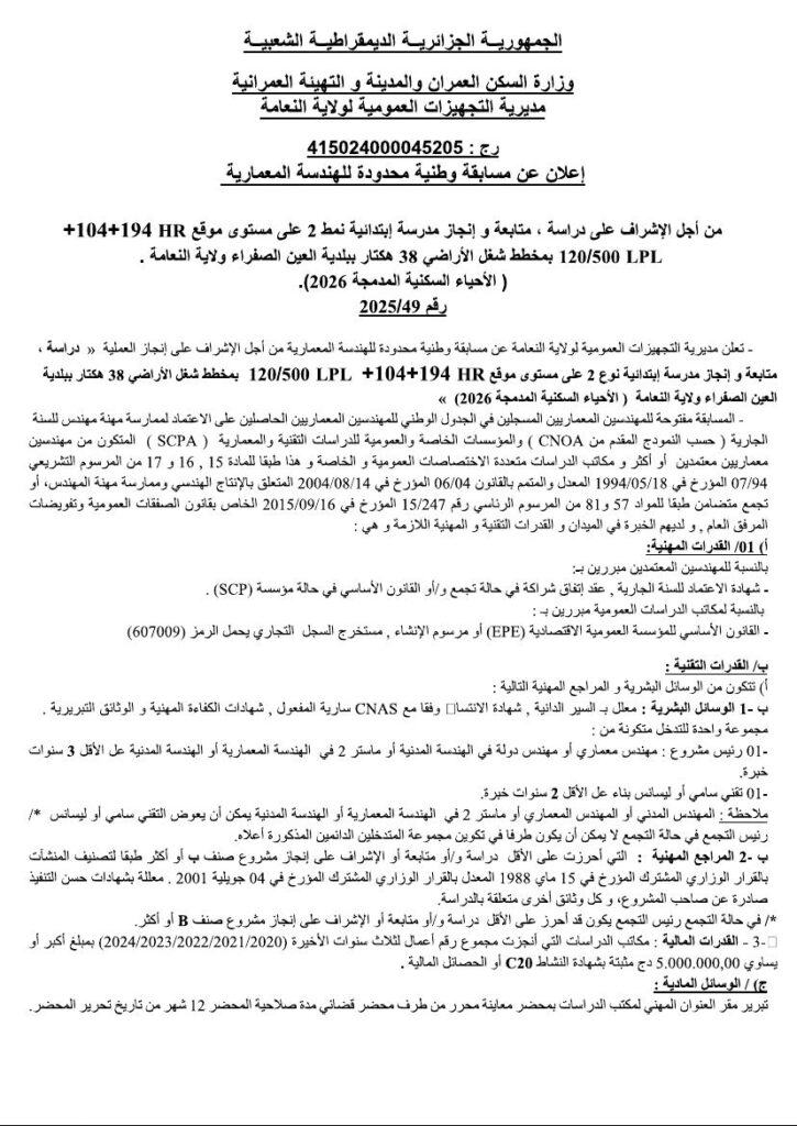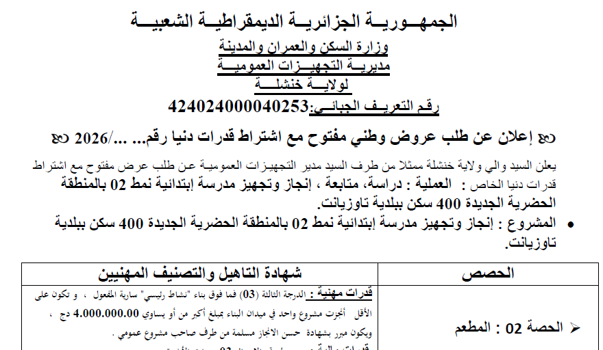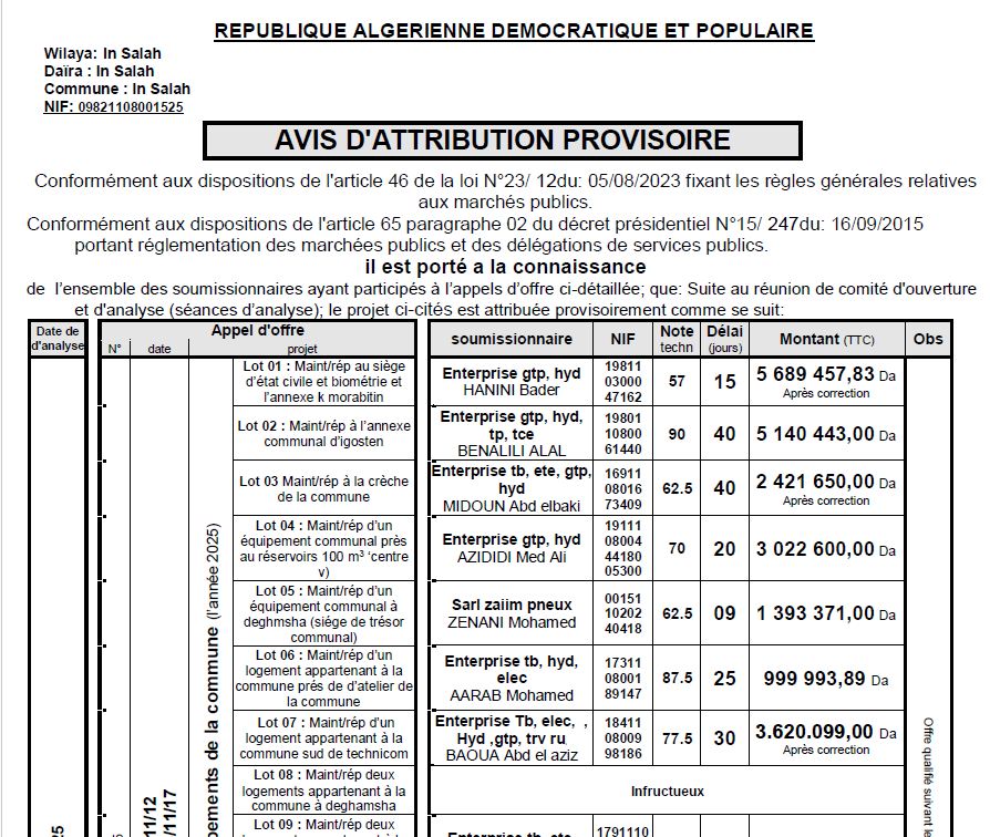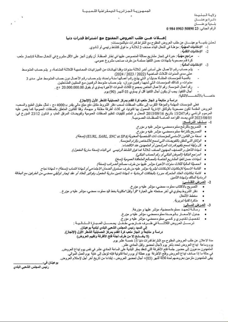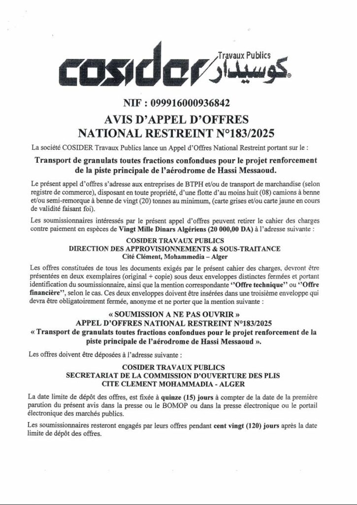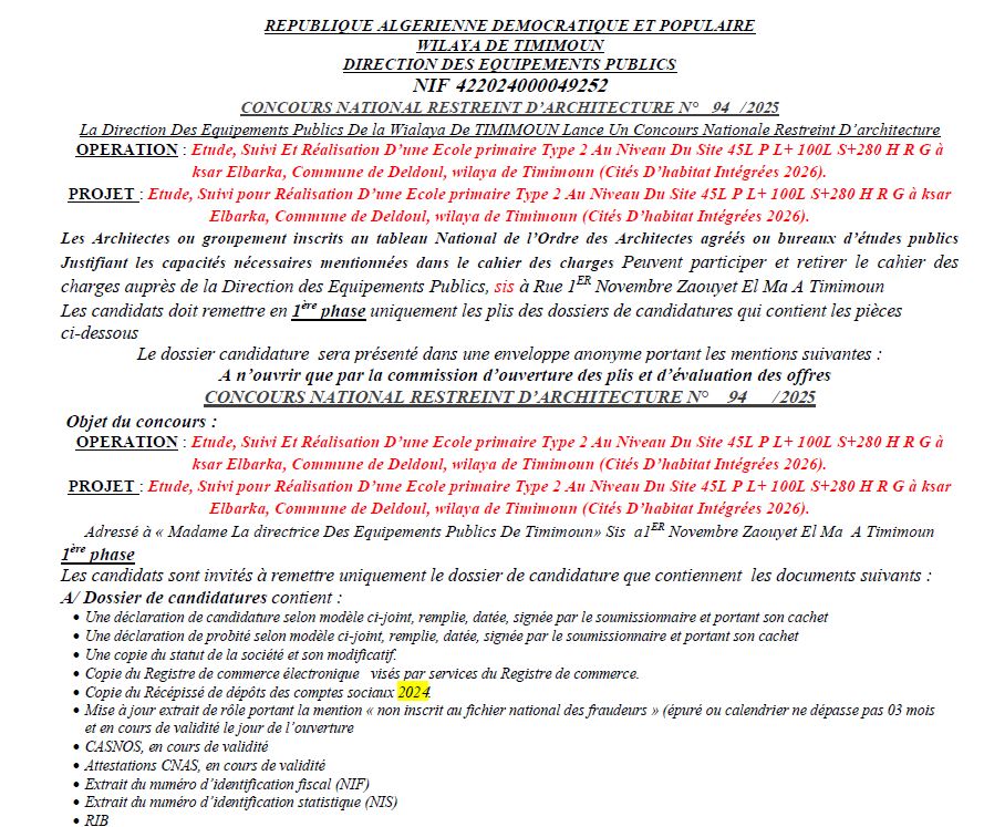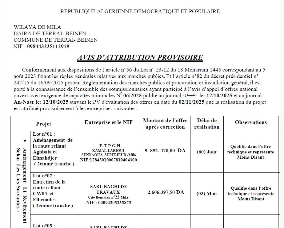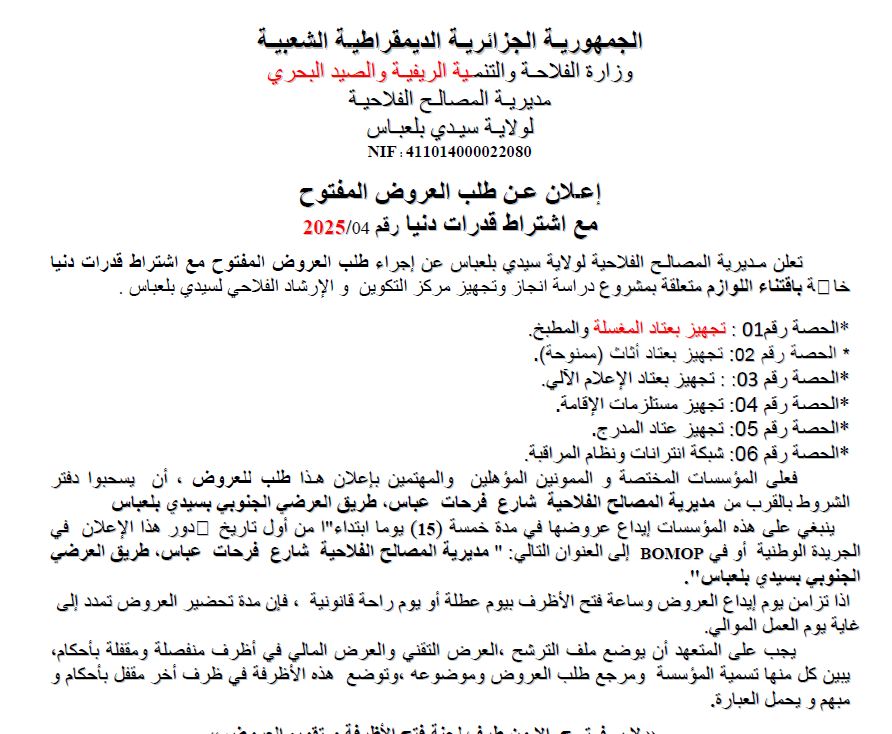 Objet : Avis d'Appel d'Offres National Ouvert avec Exigence de Capacités Minimales