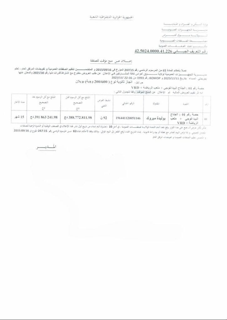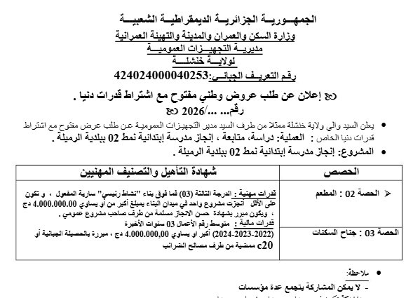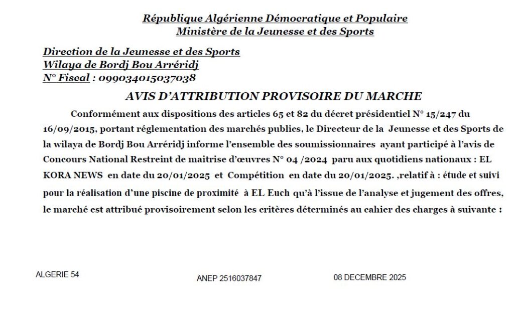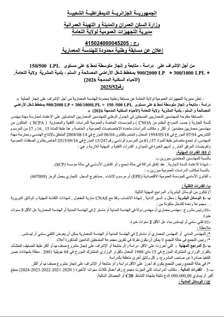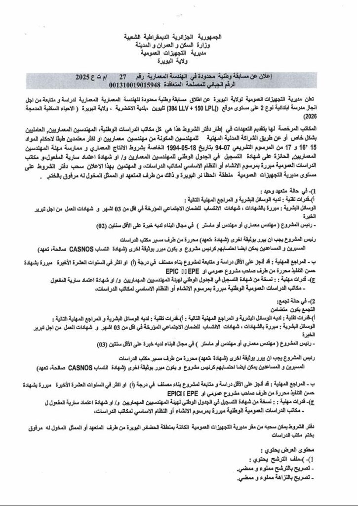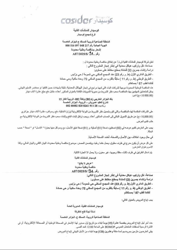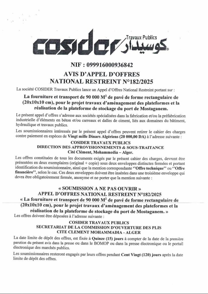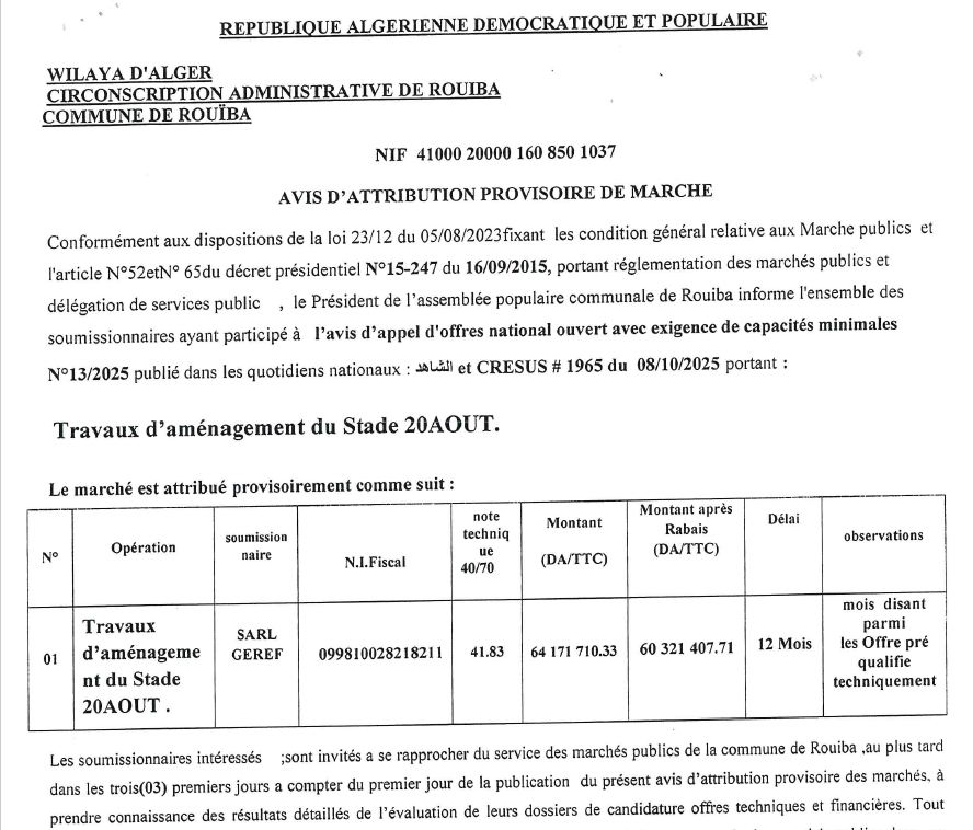 Objet : Avis d'Appel d'Offres National Ouvert avec Exigence de Capacités Minimales