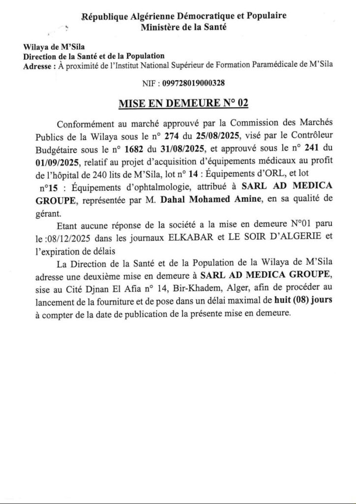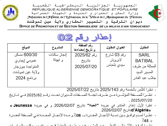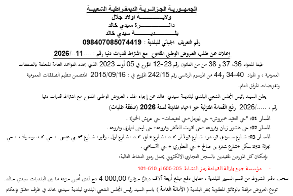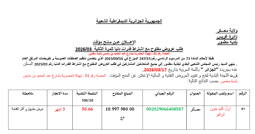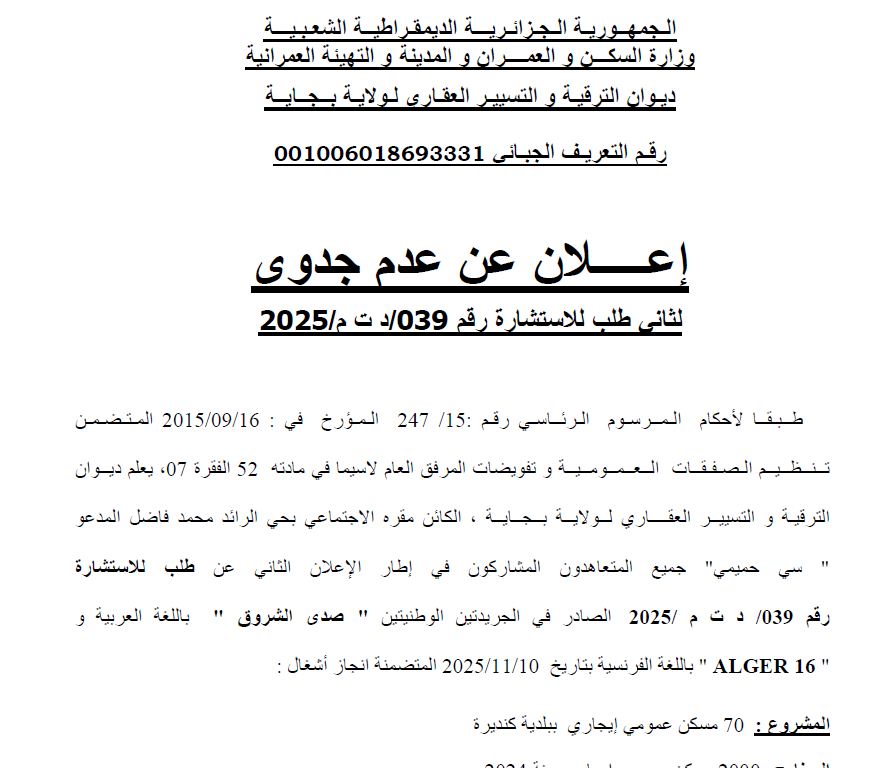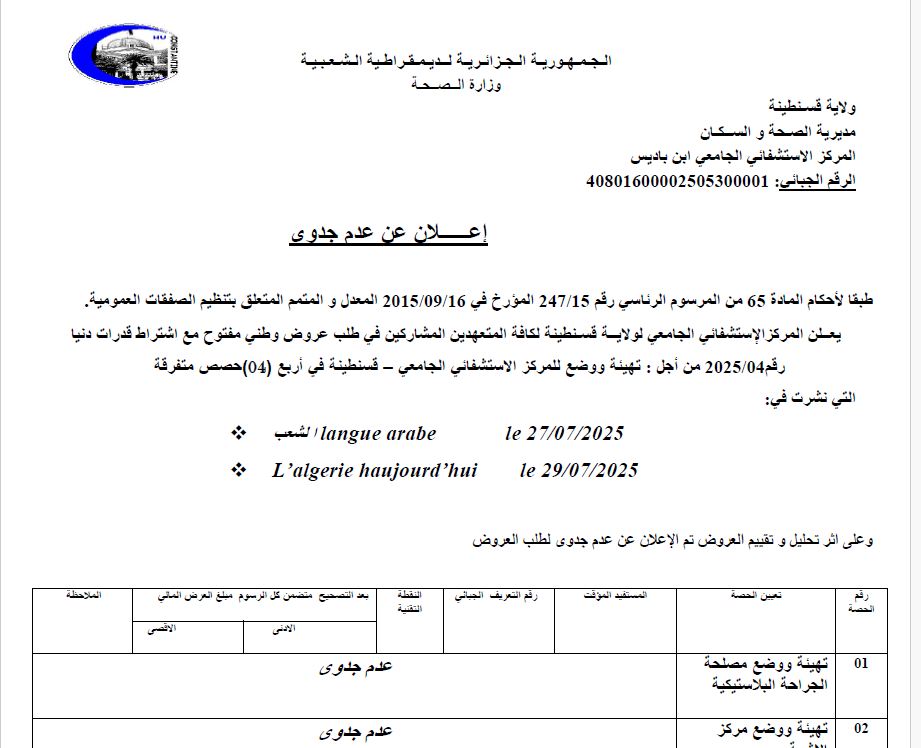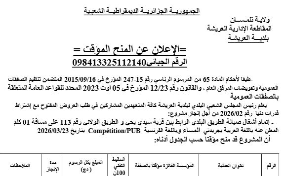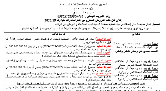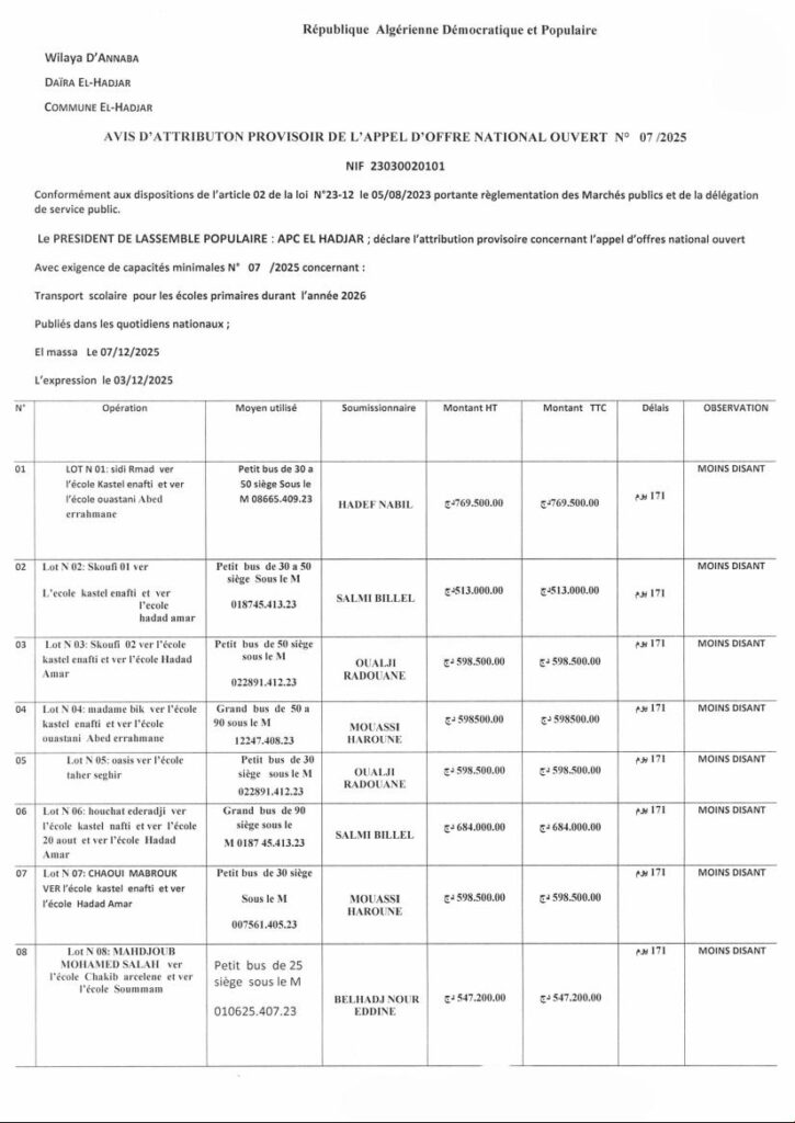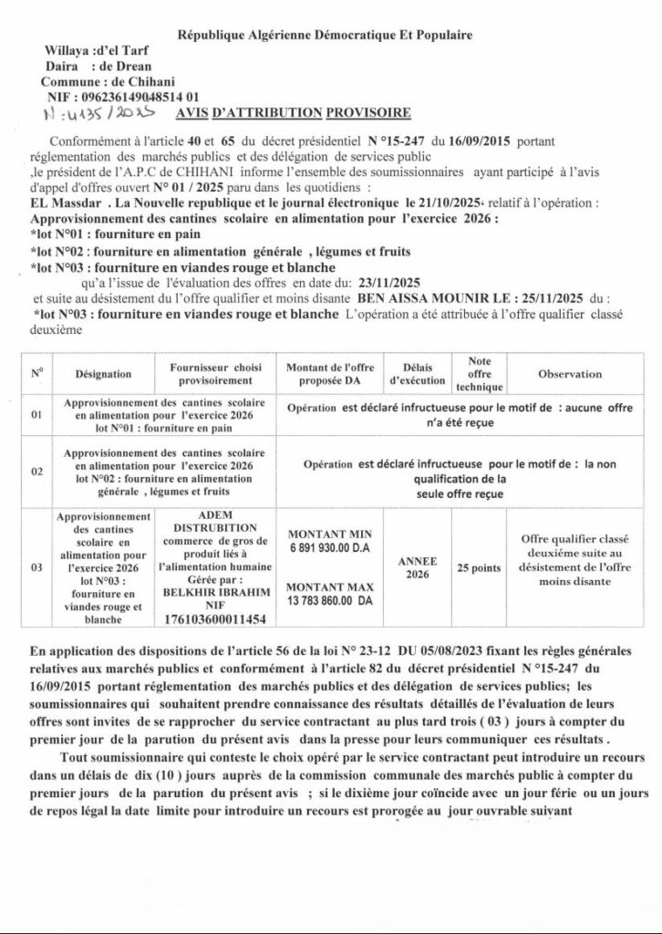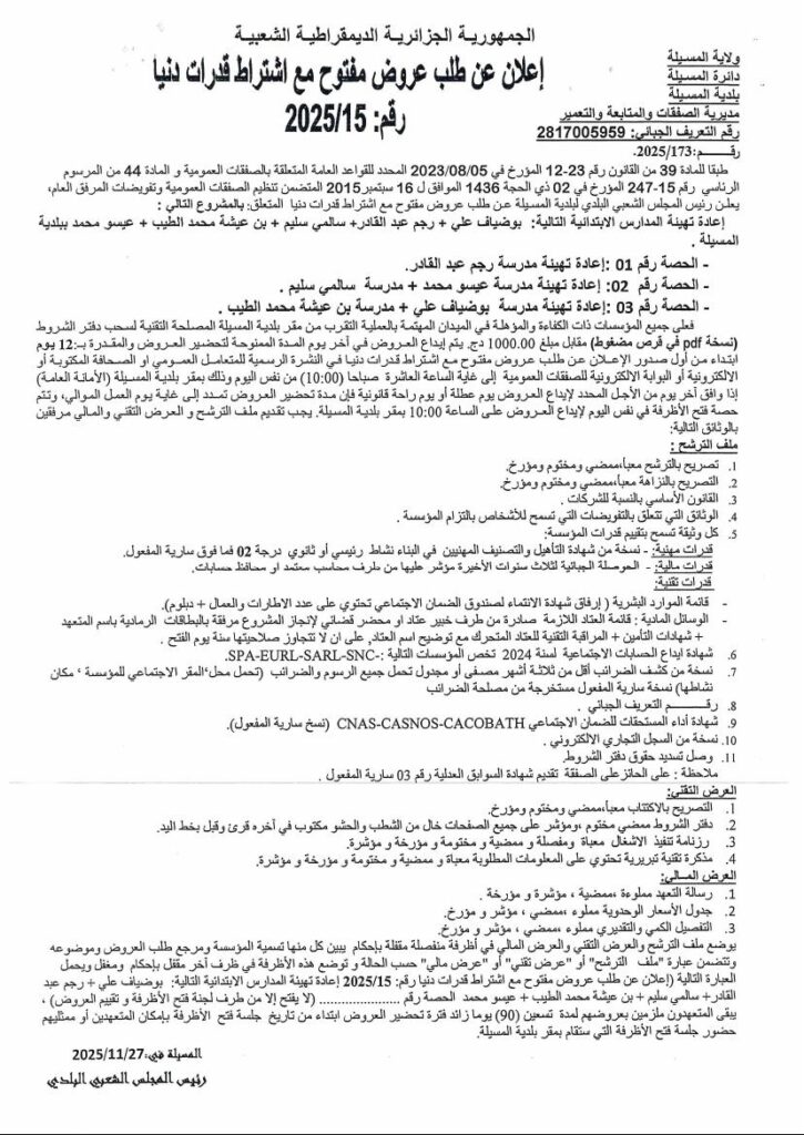 Objet : Avis d'Appel d'Offres National Ouvert avec Exigence de Capacités Minimales