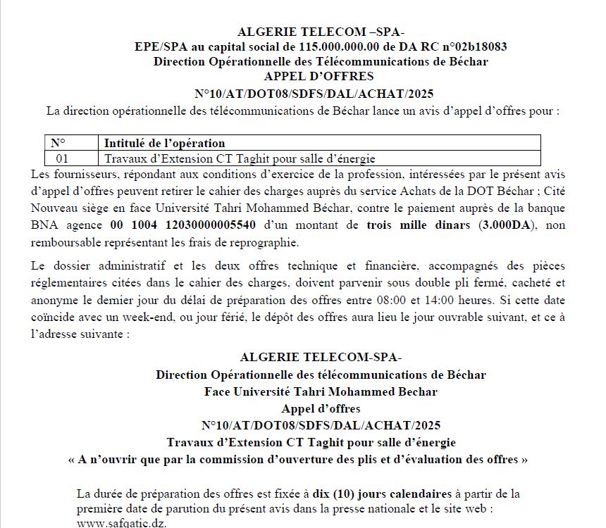 Client : Direction Opérationnelle des Télécommunications de Bechar