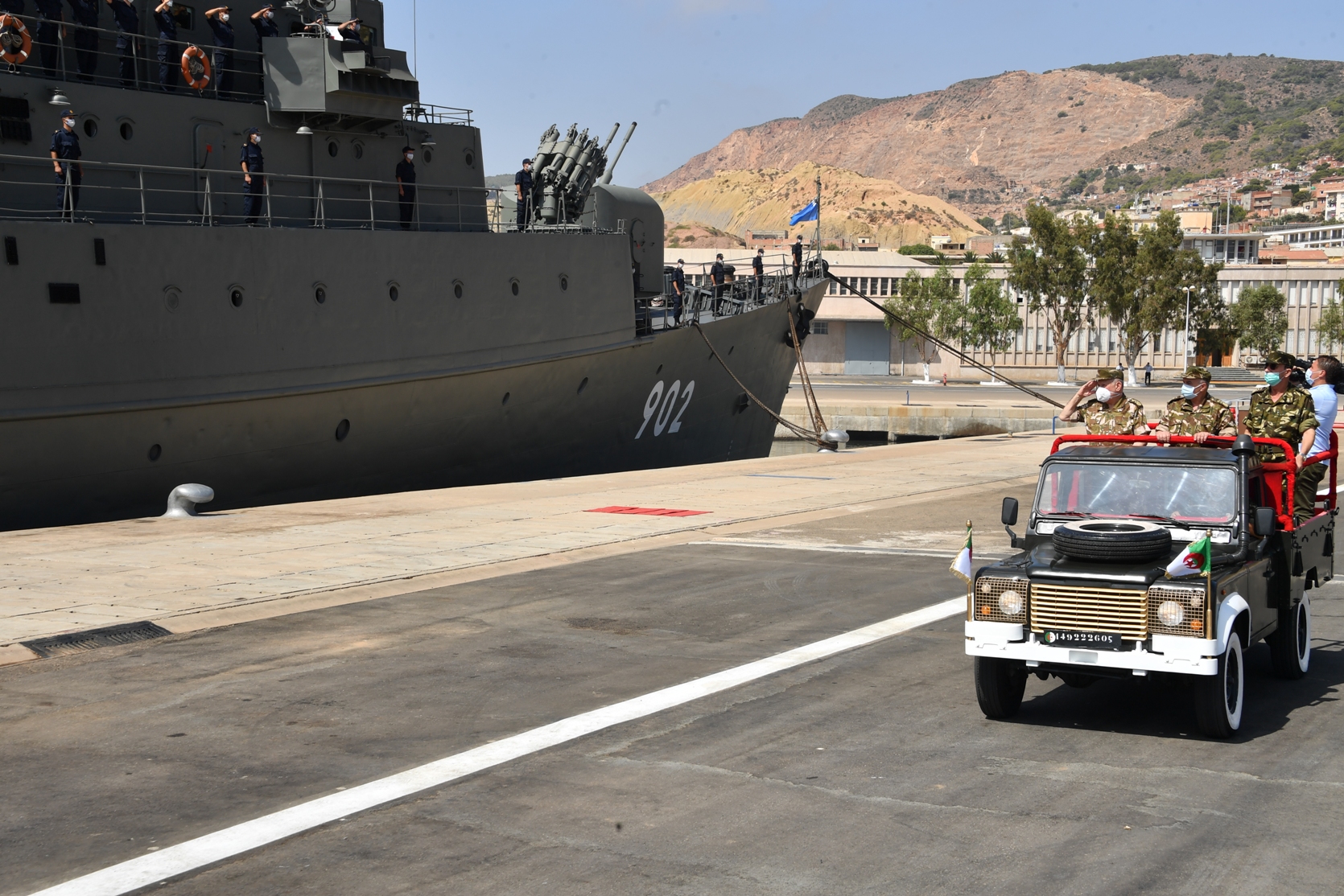 d’accueil, le Général de Corps d’Armée a suivi un exposé sur l’exercice portant tir d’un missile par un bâtiment lance-missiles contre un objectif de surface, avant de procéder à l’inspection des forces devant participer à un exercice et visiter quelques unités navales flottantes, à l’instar de la frégate ERRADI’E et le Bâtiment de Commandement et Projection de Forces KALAAT BENI-ABBES et ce, afin de s’enquérir de leur état-prêt et de connaître, de près, leurs différentes composantes, leurs équipements modernes et leurs systèmes d’armement sophistiqués en dotation.