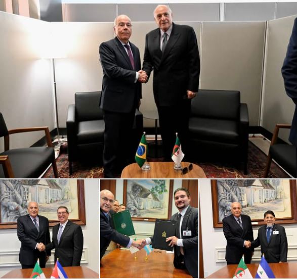 A cet égard, M. Attaf a rencontré le ministre des Affaires étrangères de la République fédérative du Brésil, M. Mauro Vieira, le ministre des Affaires étrangères de la République de Cuba, M. Bruno Rodriguez Parrilla, le ministre des Affaires étrangères et de la Coopération internationale de la République du Honduras, M. Javier Efrain Bu Soto, et le ministre des Affaires étrangères de la République du Nicaragua, M. Denis Moncada, précise le communiqué.
