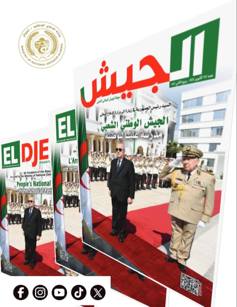 “Ses fils sont toujours prêts à relever tous les défis et à faire face à toutes les menaces, quelles que soient leur nature et leur source, n’ayant d’autre objectif que d’instaurer la sécurité et d’assoir les facteurs de quiétude dans toutes les régions de notre chère Nation”, poursuit l’éditorial, évoquant, à ce propos, le discours du président de la République, Abdelmadjid Tebboune, Chef suprême des Forces armées, ministre de la Défense nationale, prononcé à l’occasion de sa visite au siège du ministère de la Défense nationale, le 9 octobre 2025.