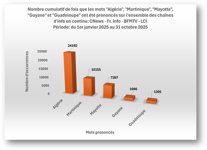 1. L’Algérie est la plus citée par les chaînes d’information en continu comparativement aux quatre DROM français analysés;