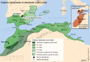 [Les Almoravides (1040-1147, Sanhadja, sunnite Malékite), leur « Ribat » (fondé vers1035 dans l’île Tida) ne se trouve pas dans l’actuel royaume chérifien mais dans l’actuel Mauritanie, les fondateurs du mouvement qui a abouti à la dynastie Almoravide, les Lamtuna sont des Sanhadja (parent des Touareg), quant à leurs territoires, ils ne se trouvent pas dans ceux de l’actuel royaume Alaouite mais dans l’Adrar Mauritanien. Motivés par leur volonté de propager l’islam (selon leur dogme Sunnite Malékite), et favorisés par leur maîtrise militaire, les Almoravide ont adopté le modèle du jihâd, de la même manière que Salah Eddine Al Ayubi au « Machrek ». Le jihâd des Almoravide prend deux formes principales : primo diffuser leur perception de l’islam, après la conquête de territoires qui ne leurs sont pas propres contre des po qu’ils considéraient hérétiques ; secundo lutter contre les entités non musulmanes, précisément celles des rois catholiques d’Al Andalus. Le Premier Jihâd Almoravide, s’est d’abord fait dans leur milieu naturel (le désert) sur les routes caravanières, au pays de Ghana (qui s’étalait sur une grande partie du Mali, de confession animistes), et Sijilmassa (Zenète, kharidjite sufrite). La conquête des royaumes Masmuda et Zenète répond au même impératif religieux, comme l’illustre bien la lutte de ‘Abd Allah ibn Yâsin contre le royaume des Berghwata, et leur religion. Si la conquête territoriale est évidente , elle ne l’est pas pour des raisons expansionnistes : l’idée étant avant tout d’imposer l’islam selon le dogme appris dans le « Ribat » pour preuve après avoir défait les royaumes Zenète , les Almoravides se sont arrêtés au cœur de l’Algérie actuelle, car les dynasties dans ces territoires ( actuel Tunisie et la moitié de l’Algérie ),les Zirides et leurs cousins Banu Hamad, étaient des Sanhadja, ils étaient donc de la même confédération, ils ne les attaquèrent pas, ils ont fondé Marrakech en 1062 qu’ils désigneront capita, c’est à partir de cette base que se feront les incursions vers l’ouest et vers Al Andalus .]