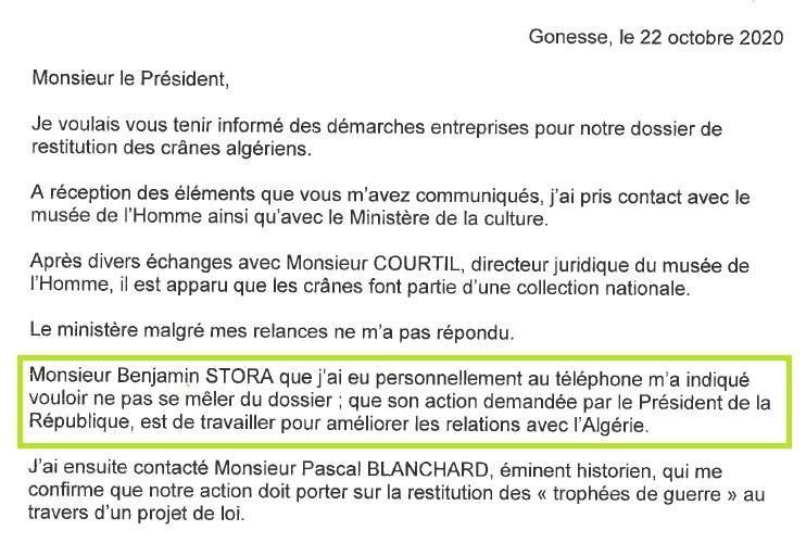 Invité sur le plateau bancal de désinformations généralisées du système colonial, Benjamin Stora a piqué une colère rarement exposée au grand public, en dénonçant aussi le documentaire commandé par le régime de Rachida « Data » qui lui consacra 2 minutes au Musée National d’Histoire de la décapitation Naturelle des Algériens, et 20 minutes de propagande avec le légume Amir.fr raclé du fond de la casserole où mijotent les fruits « indigènes » pourris. Ont-ils ont voulu empêcher Stora de changer son fusil d’épaule, lui qui aurait décliné, selon une correspondance de Maître F.A, en date du 22 octobre 2020, l’invitation à contribuer au dossier des « crânes des résistants algériens décapités» ?