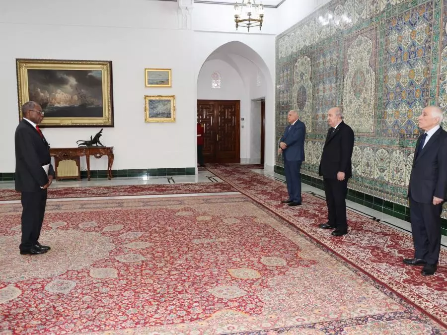 Le Président de la République, Abdelmadjid Tebboune, a reçu, ce lundi, les lettres de créance de Son Excellence l’Ambassadeur de la République du Ghana, Edward Kwaku Cofie.