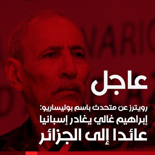 La chaîne Al Hurra, citant Reuters, vient d’annoncer que le président sahraoui Brahim Ghali aurait quitté l’Espagne à destination de l’Algérie.