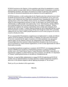Cinq membres du Congrès américain  à savoir Sara Jacobs, membre de la sous-commission Afrique, Sydney Kamlager-Dove, James P. McGovern, Ilhan Omar et Joaquin Castro, appellent le Secrétaire d’Etat américain  Antony Blinken,  et Linda Thomas-Greenfield, ambassadrice des États-Unis aux Nations unies sur la situation au Niger., à exercer des pressions sur les pays de la CEDEAO à alléger les sanctions contre le Niger, décidées au lendemain du renversement du président Mohamed Bazoum le 26 juillet 2023.