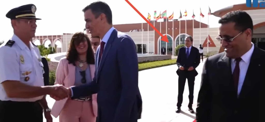 Que fait l’ambassadeur du régime du Makhzen derrière le premier ministre mauritanien Mokhtar Ould Diaye et le président du Conseil Espagnol Pedro Sanchez à l’aéroport de Nouakchott au moment ou ce dernier s’apprêchait à quiter la Maurianie?